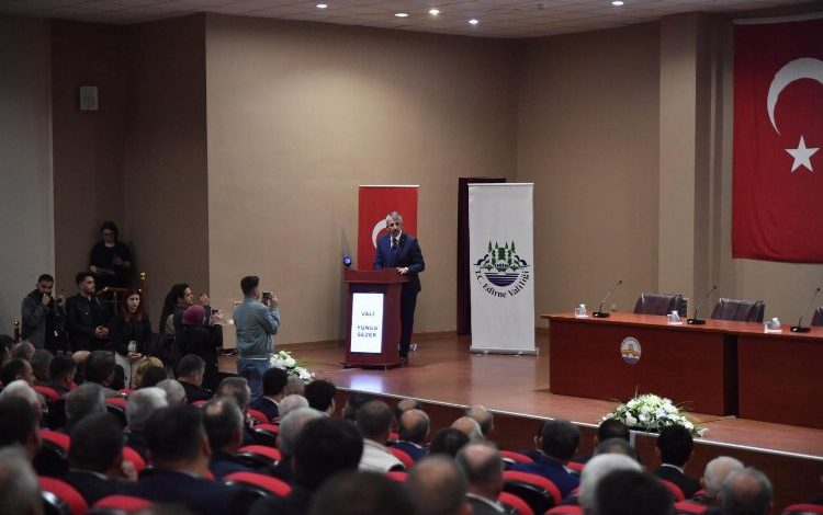 Edirne Valisi Yunus Sezer, Edirne’deki köy, ilçe ve mahalle muhtarlarıyla buluştu. Trakya Üniversitesi İktisadi ve İdari Bilimler Fakültesi Toplantı Salonu’nda gerçekleştirilen toplantıda, muhtarların yapmış olduğu çalışmalar görüşüldü.