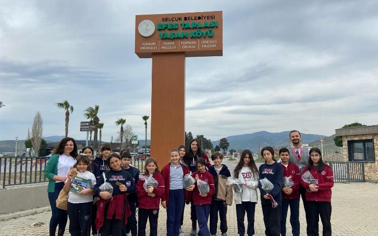 Çocuklara sürdürülebilir tarımın, atalık tohumun önemini uygulamalı olarak öğretmeyi amaçlayan “Tohumdan Sofraya, Sofradan Tohuma” Projesi için Efes Tarlası Yaşam Köyü’ne gelen öğrenciler, burada toprağa dokunarak çalışmaları uygulamalı olarak izlediler.
