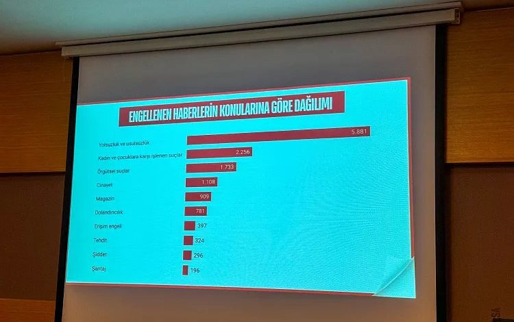 Euro News’in aktardığı MLSA’nın raporuna göre, 14 bin 680 yayınlanan habere erişim engeli getirilirken, raporda erişim engeli getirilen haberlerdeki “öznelerin” ağırlıklı olarak “kamu görevlileri” olduğu belirtildi. Raporda 2023 yılında 5.881 haber ile en çok “yolsuzluk ve usulsüzlük” konularındaki haberlerin engellendiği belirtildi.